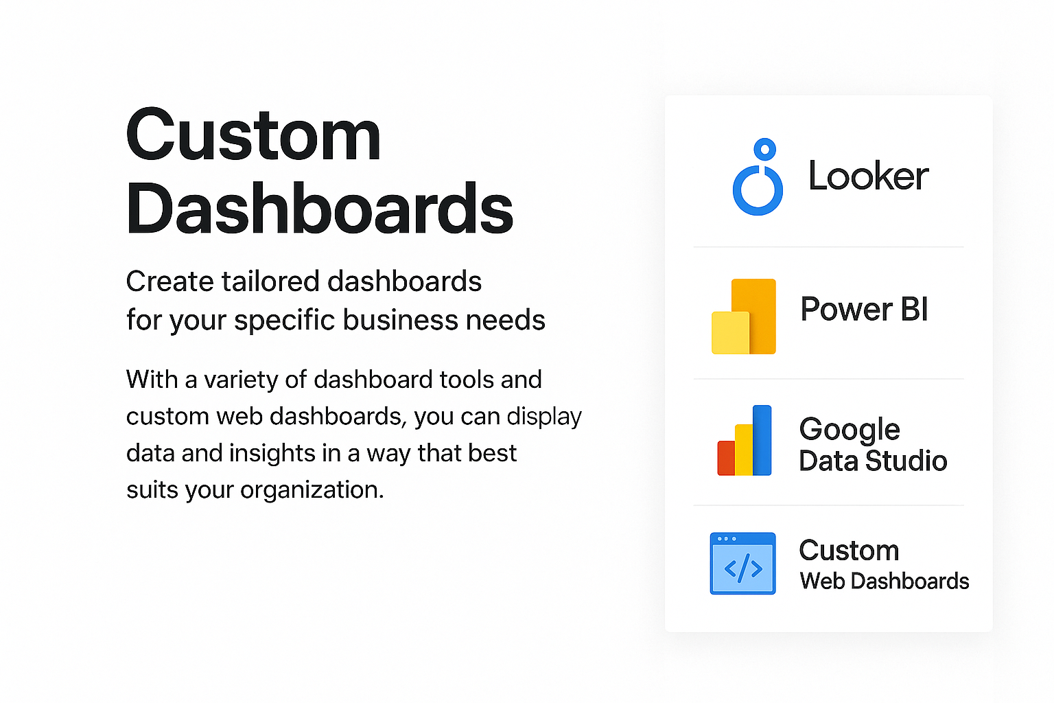 Our custom dashboards are perfect for: